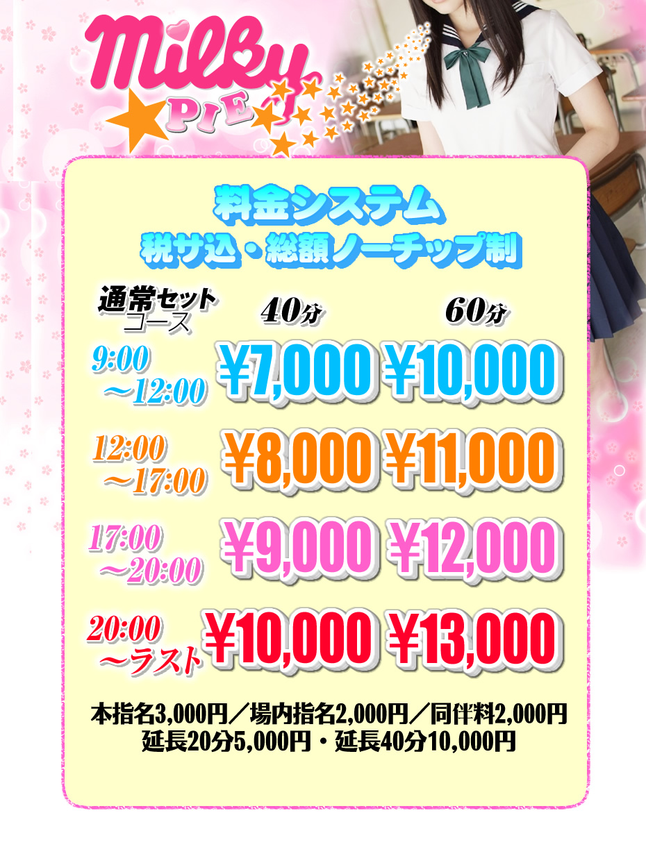 制服セクキャバ『ミルキーパイ』料金システムご案内